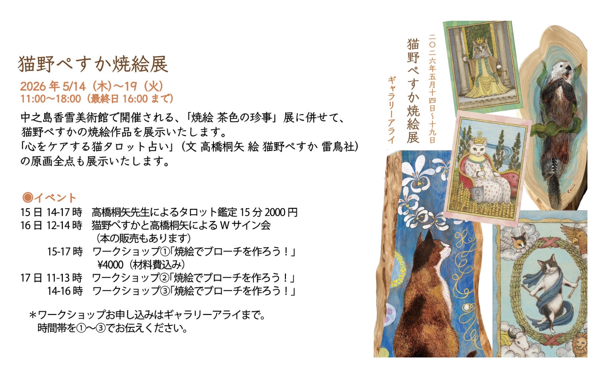 兵庫県西宮のギャラリーアライさまにて行われる、猫野ぺすかさんの原画展示会に合わせて、タロット鑑定会を行います。